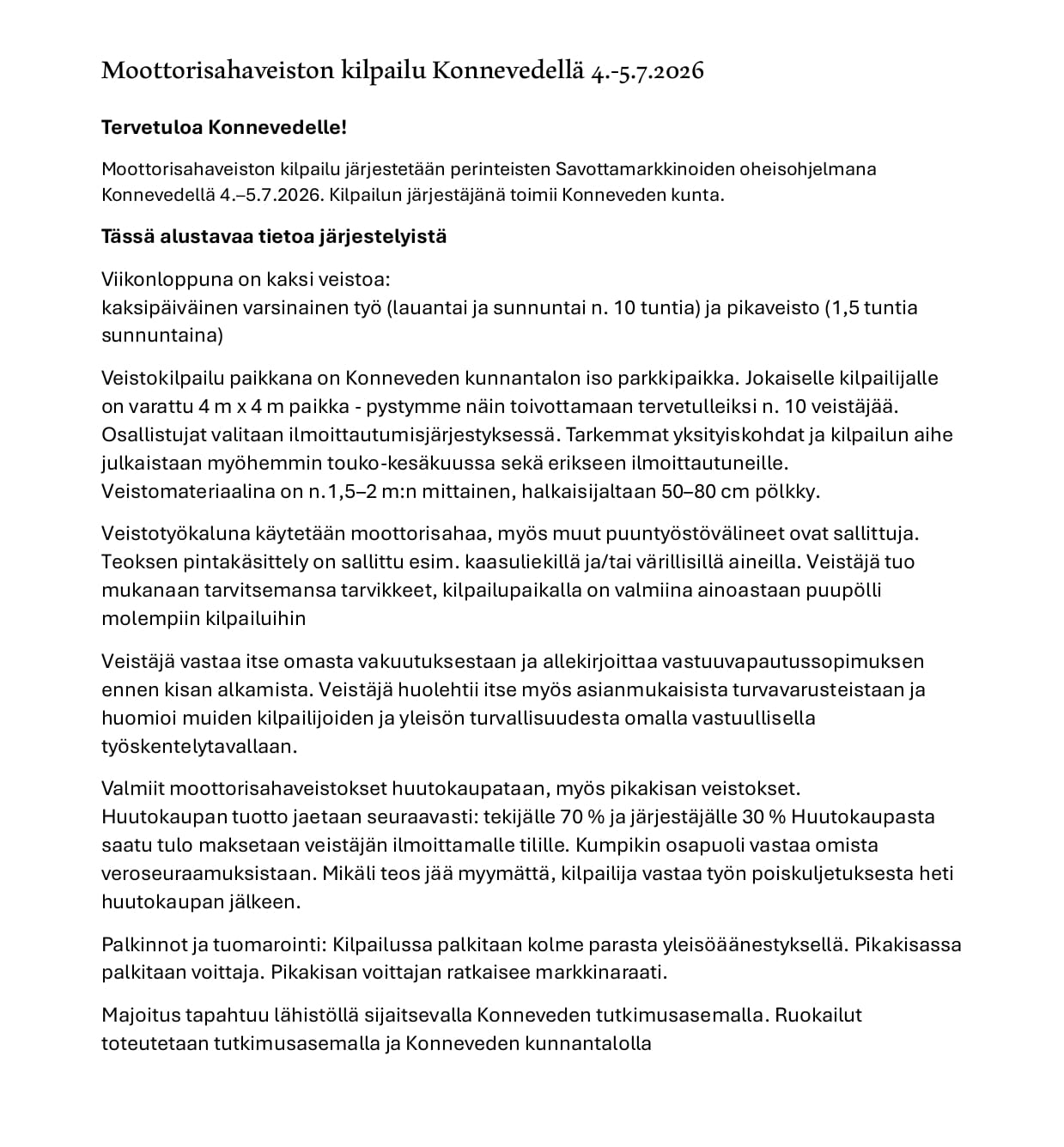 - Moottorisahaveistokilpailu Konnevedellä 4-5.7.2026